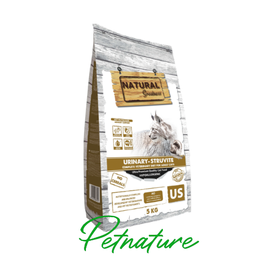 Natural Greatness Urinary-Struvite es una receta hipoalergénica, completa y sin cereales destinada a gatos adultos con urolitiasis por estruvita y cistitis idiopática felina. Este alimento se caracteriza por su poder de disolución y reducción de la aparición de cálculos de estruvita gracias a sus propiedades de acidificación de la orina y a su bajo contenido en magnesio. Urinary-Struvite también posee un contenido reducido en sodio, potasio y calcio para apoyar el buen funcionamiento del aparato urinario. Además, su fórmula antiestrés con proteína láctea hidrolizada contiene alfa-capsozepina, un ansiolítico natural que causa un efecto positivo en el sistema nervioso y circulatorio del gato.